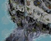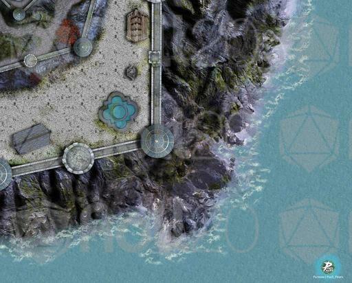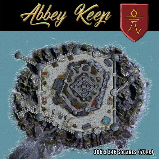 This is a battlemap of a famous coastal abbey keep with lots of towers and walls where monks worship the god of knowledge.